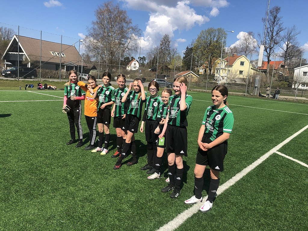 Nu till matchen. Första kvarten kan man beskriva som "trevande" och det märktes tydligt att det fanns premiärnerver hos båda lagen. Det tände till lite efter lite schyssta men tuffa närkamper och Stuvsta tog över spelet mer och mer och skapade lite halvheta chanser. Det dröjde dock till 17:e minuten innan My kliniskt kunde rulla in 1-0 frispelad av Fanny. Perioden avslutades med ganska tung Stuvstdominas.
