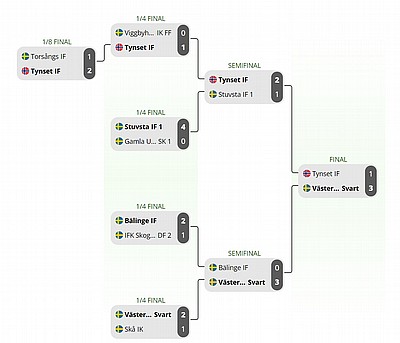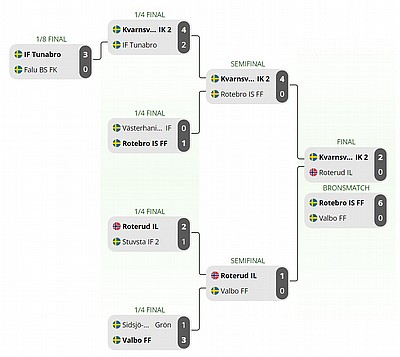 I slutspelet blev det bra matcher där lag 1 gick vidare till semifinal efter en 4-0 vinst i kvartsfinalen. Efter det så blev det två jämna matcher där båda lagen förlorade med 2-1 i kvartsfinal i A-slutspelet och i semifinal i B-slutspelet.